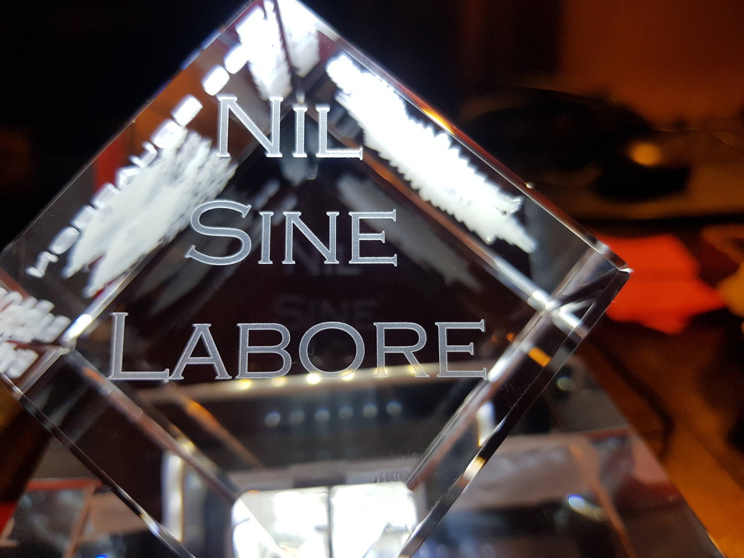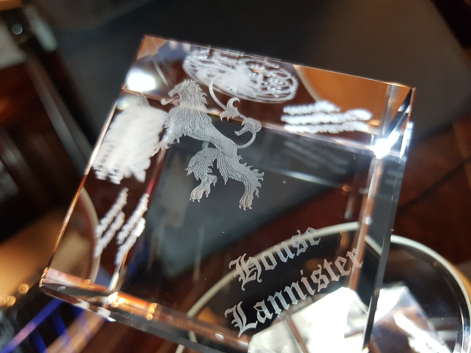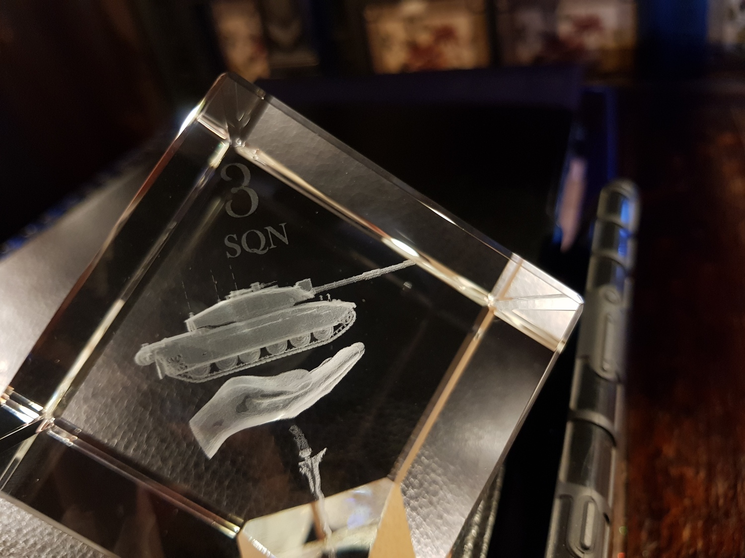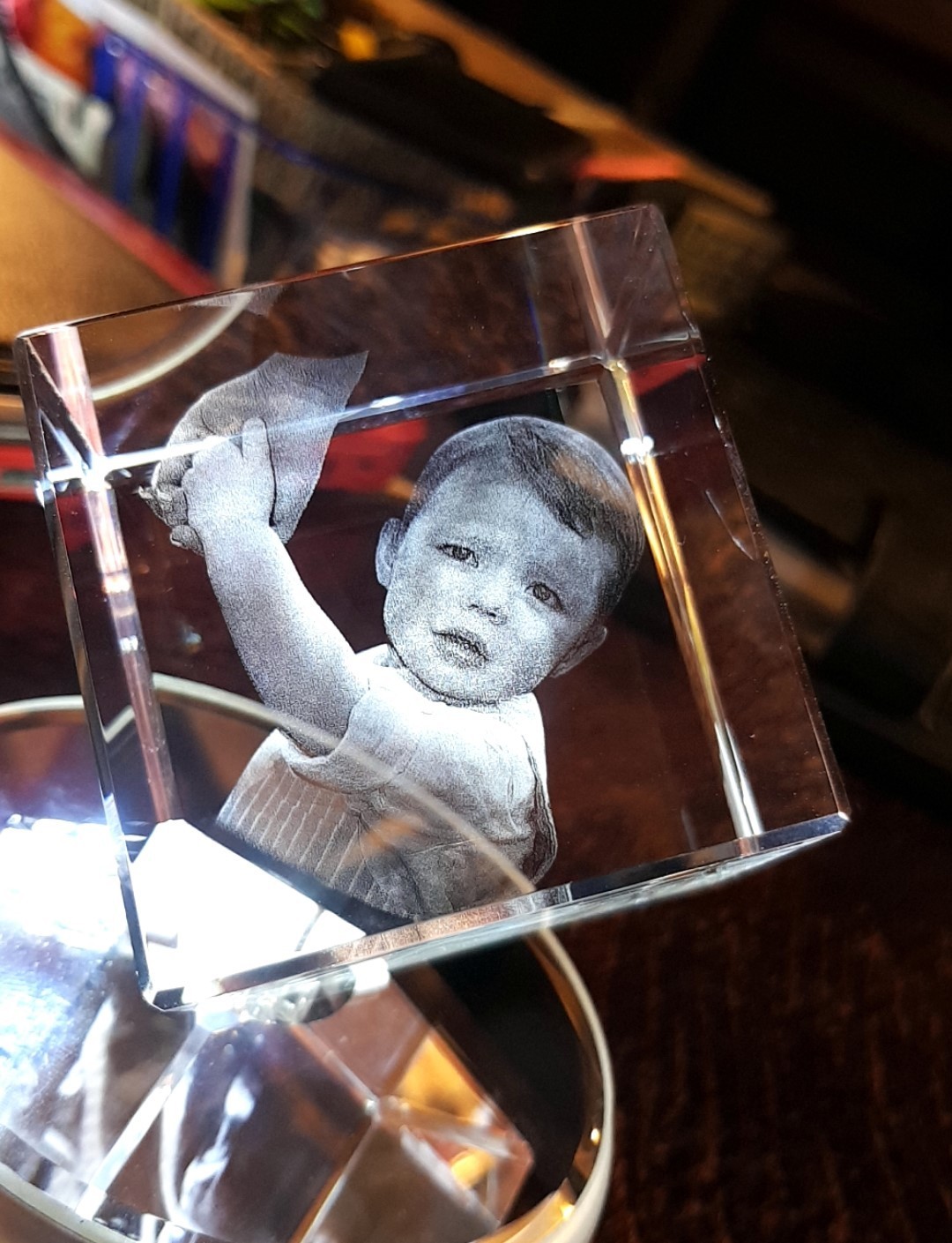 Stunning corner cut lead crystal cube, (Diamond) available for a centred image engraving or with 3 sides (with 1 optional) image.